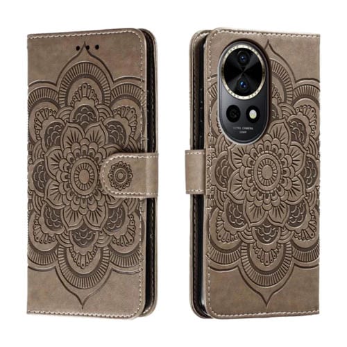 Funda de Cuero para Huawei Nova 12 Pro con Patrón En Relieve Sun Mandala (Gris)