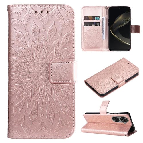 Funda para Huawei Nova 12 Se y Nova 11 Se de Cuero con Tapa y Patrón de Girasol en Relieve (Oro Rosa)