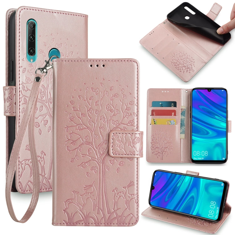 Funda de Cuero para Huawei P Smart + 2019 Enjoy 9S con Relieve de Árbol y Ciervo (Oro Rosa)