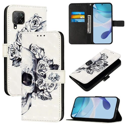 • 1x Funda para Huawei P40 Lite 4G y Nova 6 Se de Cuero con Tapa Horizontal y Pintura 3D (Calavera)