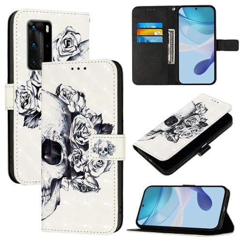 Funda de Cuero para Huawei P40 Pro con Tapa Horizontal y Pintura 3D (Calavera)