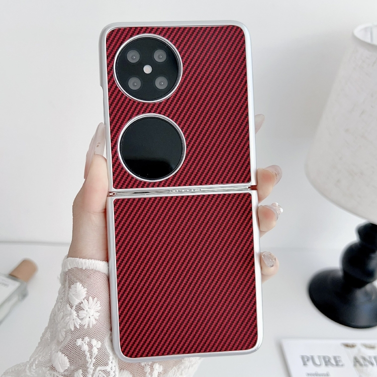 Funda para Huawei P50 Pocket Kevlar Ultrafina a Prueba de Golpes Fibra de Carbono (Rojo)