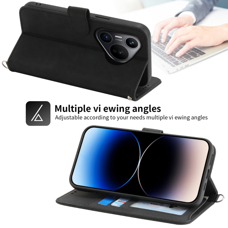 Funda de Cuero para Huawei Pura 70 con Billetera, Relieve y Flores (Negro)