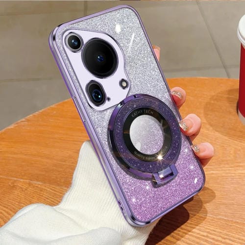 Funda TPU para Huawei Pura 70 con Soporte Redondo y Brillo Degradado Ultra Plateado (Púrpura)