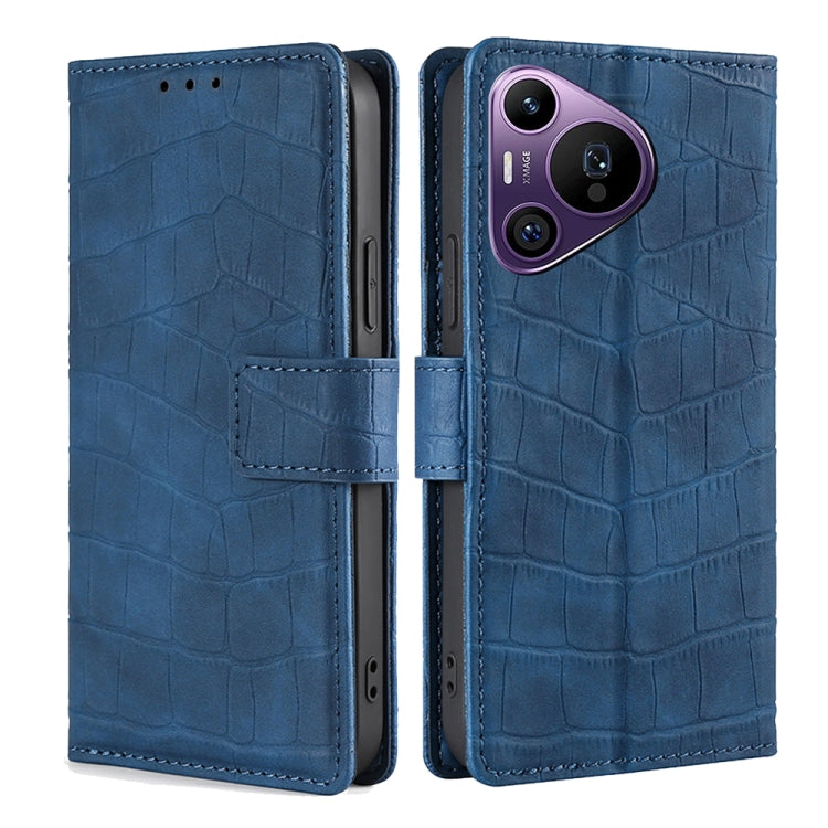 Funda para Huawei Pura 70 Pro y 70 Pro + 5G de Cuero con Cierre Magnético y Piel de Cocodrilo (Azul)