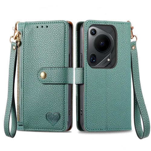 - 1x Funda de Cuero para Huawei Pura 70 Ultra Love con Zipper y Lanyard (Verde)