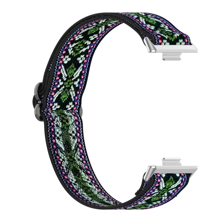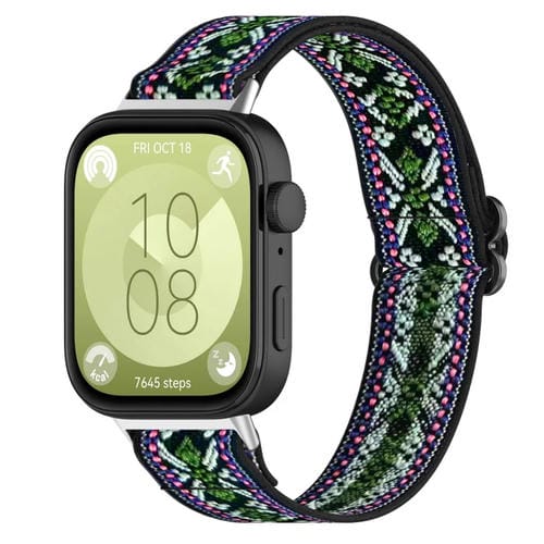 Correa de Reloj para Huawei Watch Fit 3 Nailon Elástico Estilo Étnico (Verde Morado)