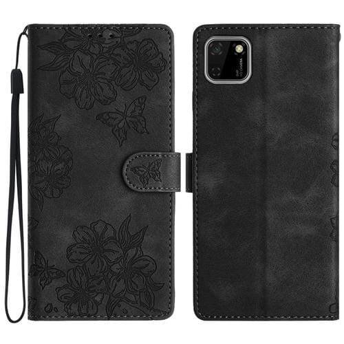 • 1x Funda para Huawei Y5P Honor 9S Cherry Blossom Butterfly Skin Feel de PU en relieve (Negro)