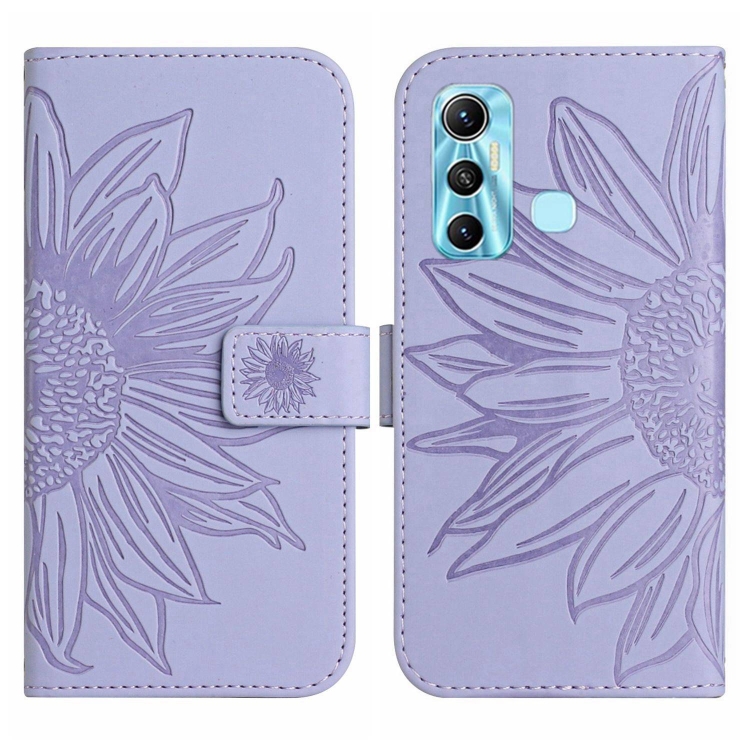 Funda Flip de Cuero para Infinix Hot 11 Skin Feel con Cordón y Patrón Sun Flower (Púrpura)