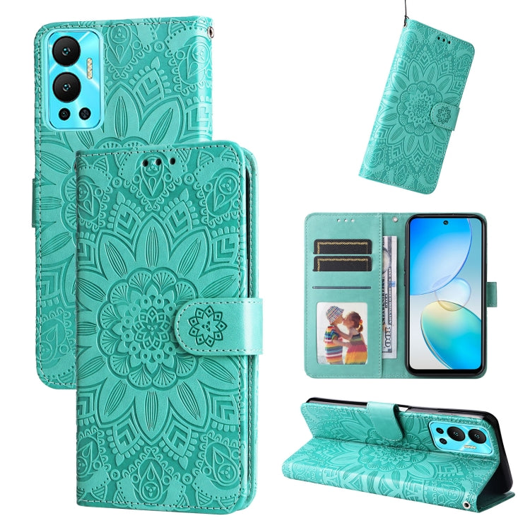 Estuche para Teléfono Infinix Hot 12 de Cuero con Estampado de Girasol en Relieve (Verde)