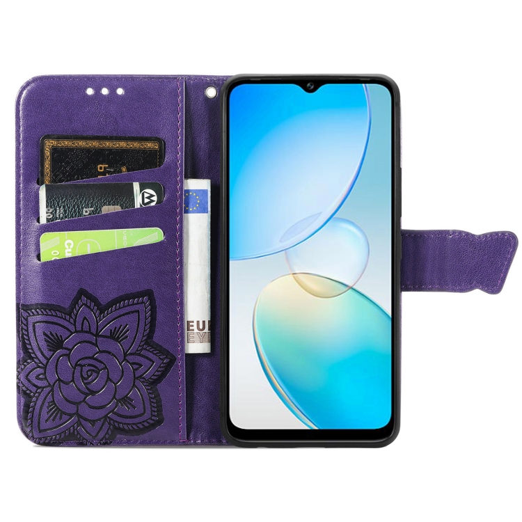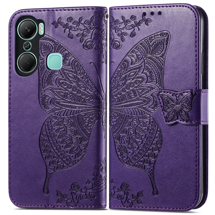Estuche para Teléfono Infinix Hot 12 Pro Butterfly Love Flower Cuero En Relieve (Púrpura)