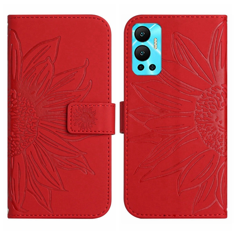 Funda de Cuero Flip para Infinix Hot 12 con Cordón y Diseño Sun Flower (Rojo)