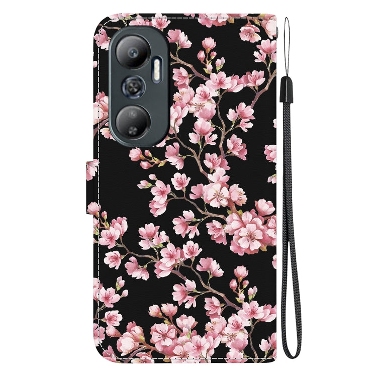 Estuche de Cuero para Infinix Hot 20 con Dibujo Coloreado y Textura de Cristal (Flor de Ciruelo)