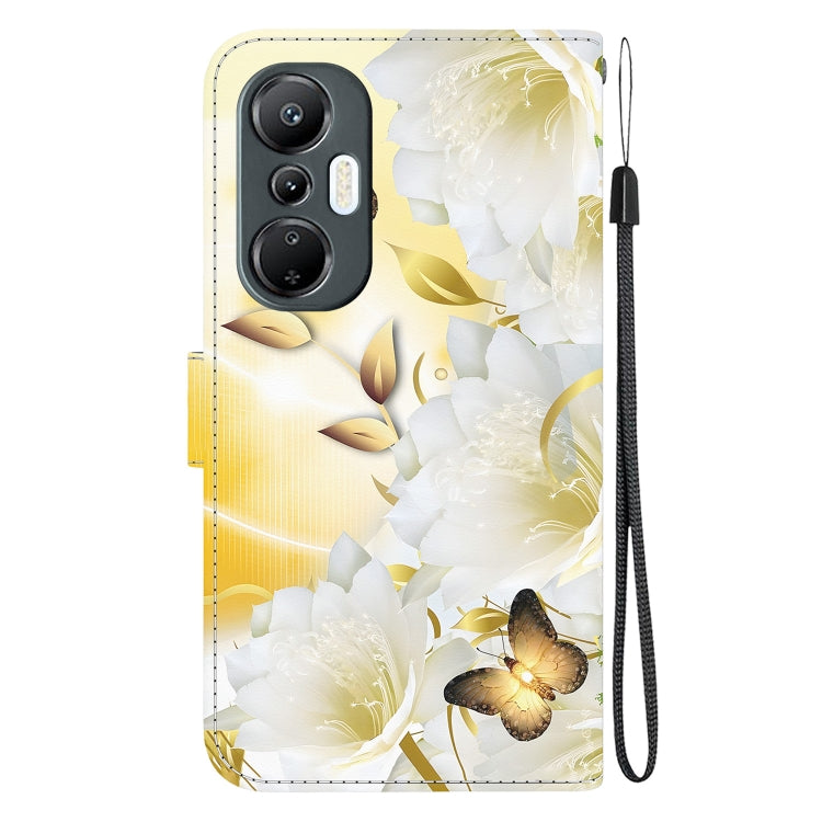 Estuche de Cuero para Infinix Hot 20S con Dibujo Epiphyllum de Mariposa Dorada y Textura de Cristal