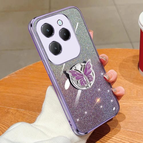 Funda para Infinix Hot 40 TPU con Soporte Mariposa y Brillo Degradado (Púrpura)