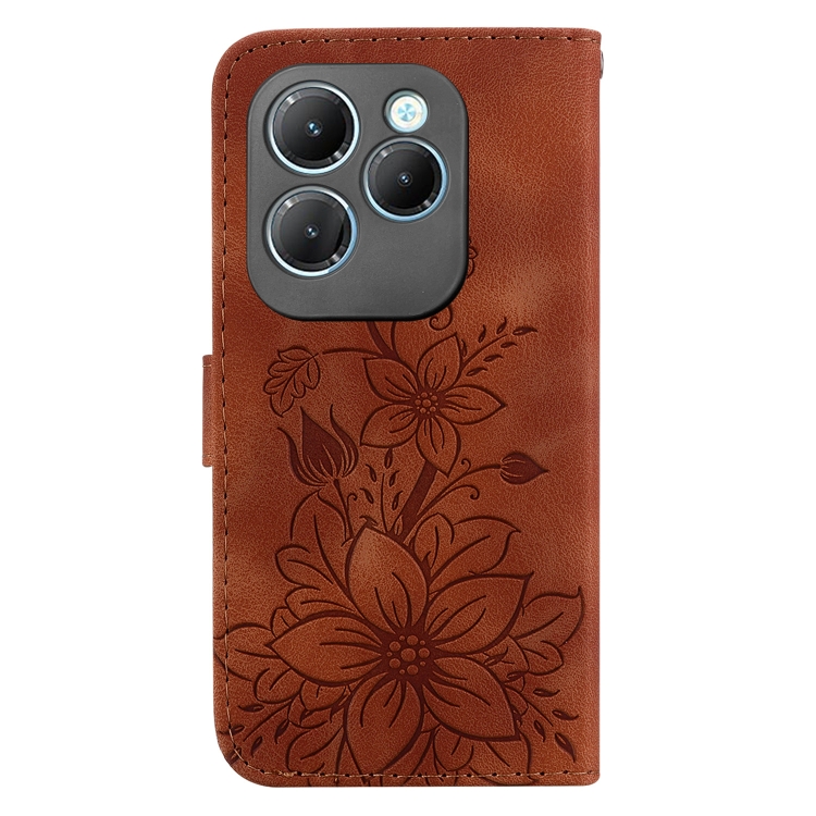 Funda de Cuero para Teléfono Infinix Hot 40 y Hot 40 Pro Lily en Relieve (Marrón)