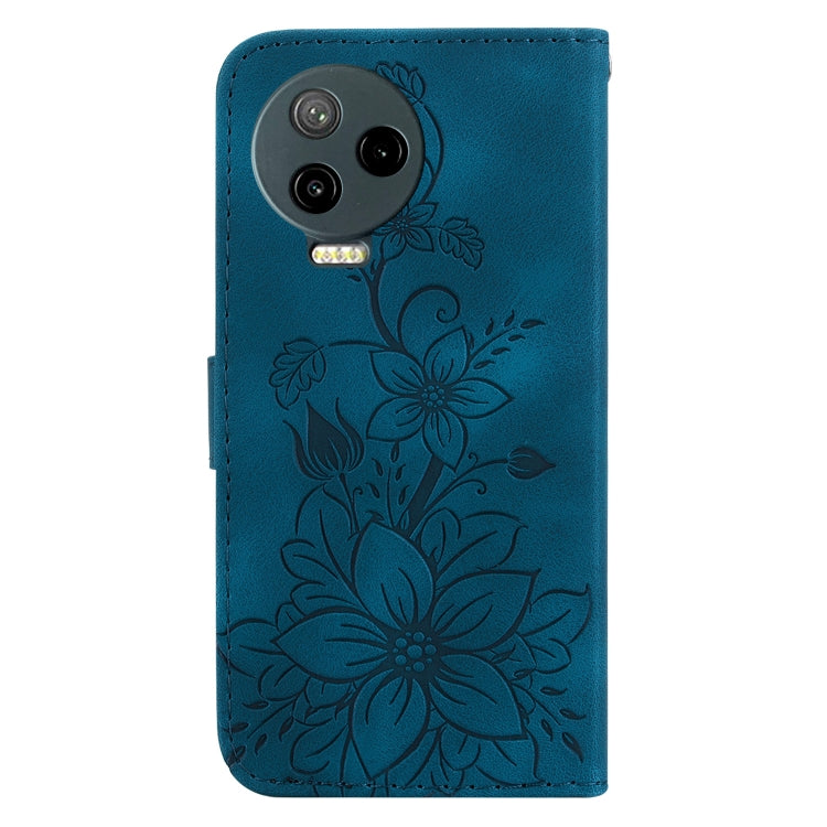 Estuche de Cuero para Infinix Note 12 Pro 4G y Note 12 (2023) con Relieve de Lirio (Azul Oscuro)