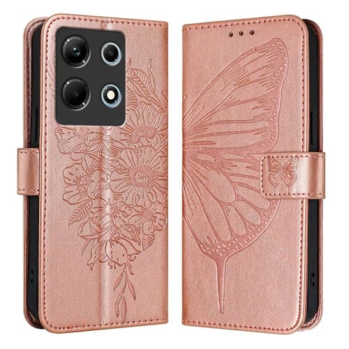 Funda de Cuero para Infinix Note 30 4G con Mariposa en Relieve (Oro Rosa)