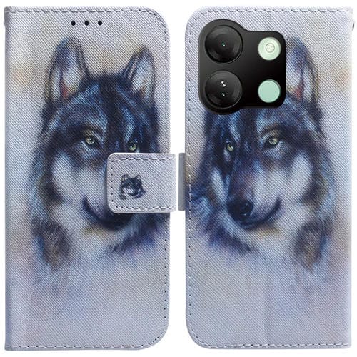 Funda de Cuero para Infinix Smart 7 HD con Tapa y Dibujo Coloreado (Lobo Blanco)