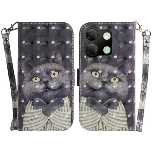 Funda de Cuero para Infinix Smart 7 HD con Tapa Horizontal y Diseño 3D (Hug Cat)