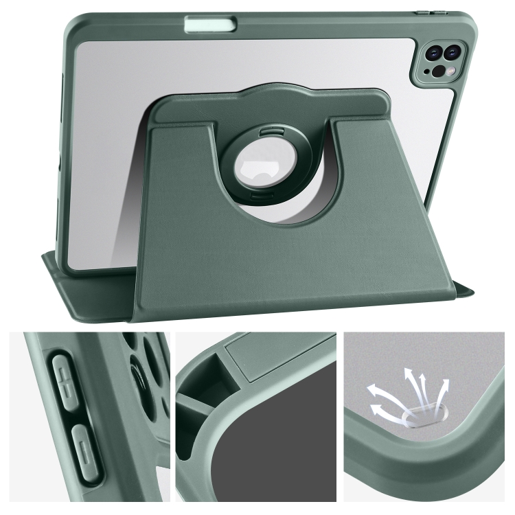 Funda Cuero Desmontable con Rotación 360 Grados para iPad Pro 11 (2024) (Verde Oscuro)