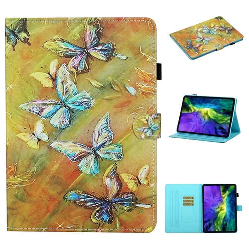 Funda de Cuero Inteligente para iPad Pro 11 (2024) con Costuras y Dibujos a Color (Mariposa)