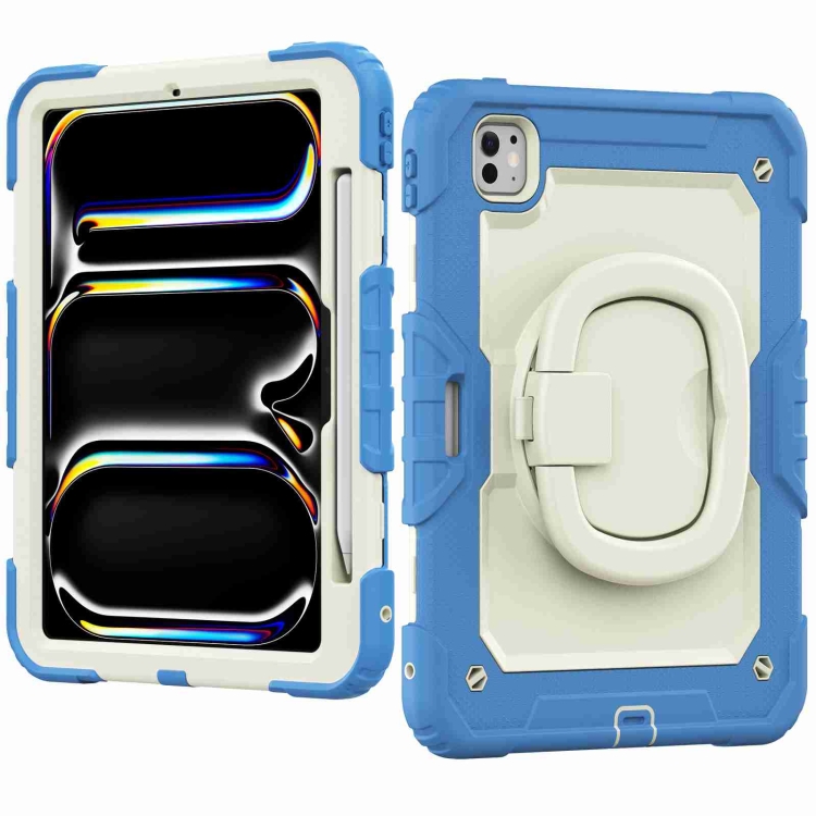 Funda de Silicona Hidrófuga para iPad Pro 11 (2024) con Correa para el Hombro (Beige, Cian y Azul)