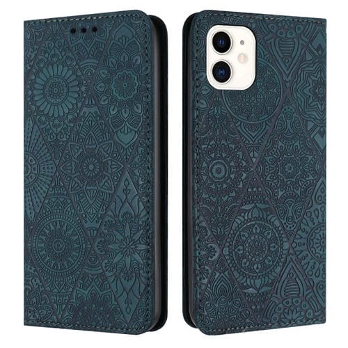 Estuche para Teléfono iPhone 11 Cuero Adsorción En Relieve Étnico (Azul)