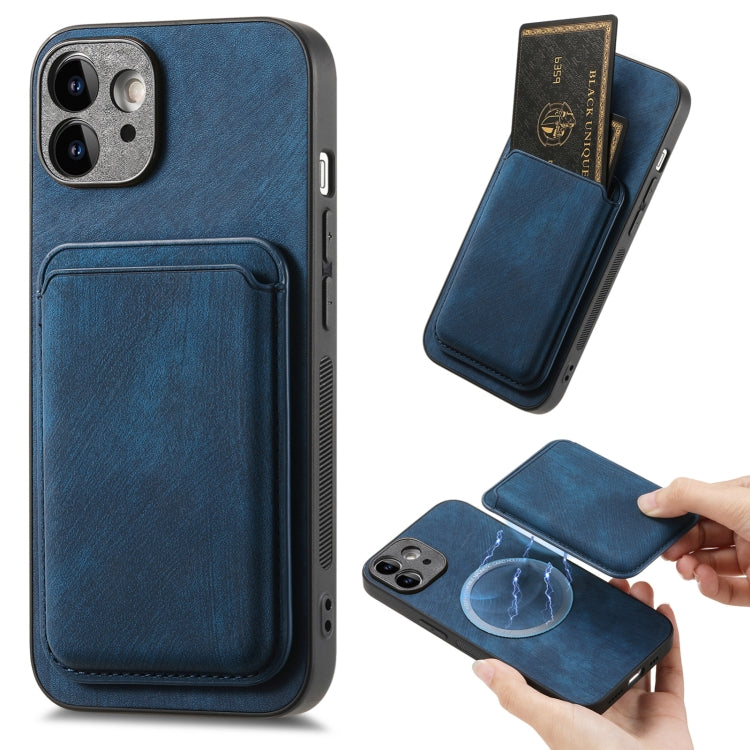 Funda de Teléfono para iPhone 11 Magnética con Bolso de Tarjeta de Cuero Retro (Azul)