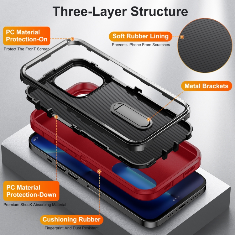 Estuche para Teléfono 3 En 1 para iPhone 11 Pro con Soporte Resistente (Rojo + Negro)