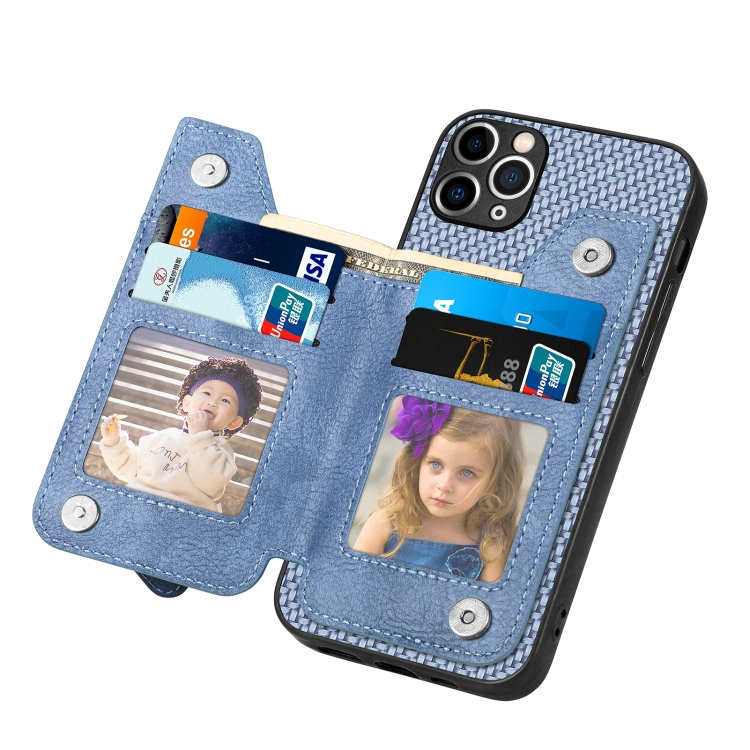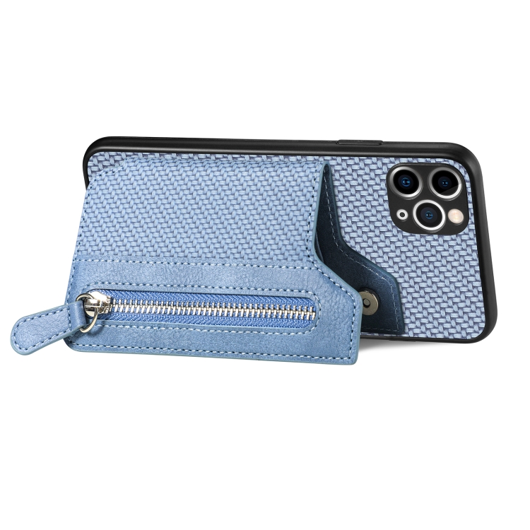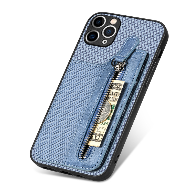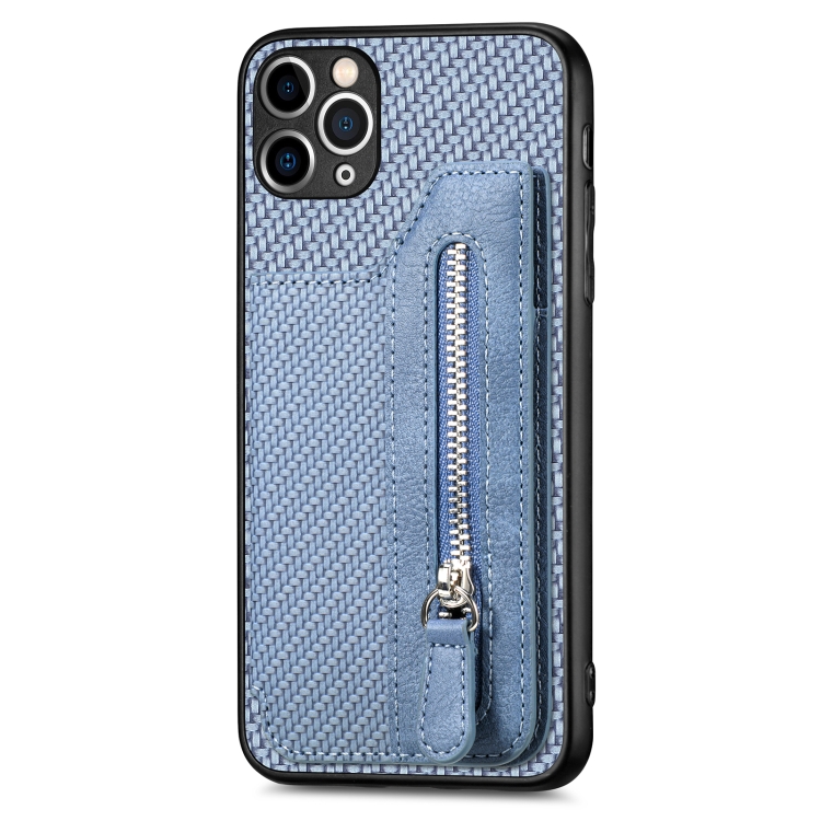 Funda para iPhone 11 Pro Carbon Fiber Horizontal Flip Zipper Wallet (Azul)