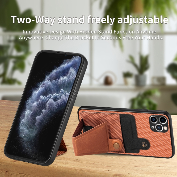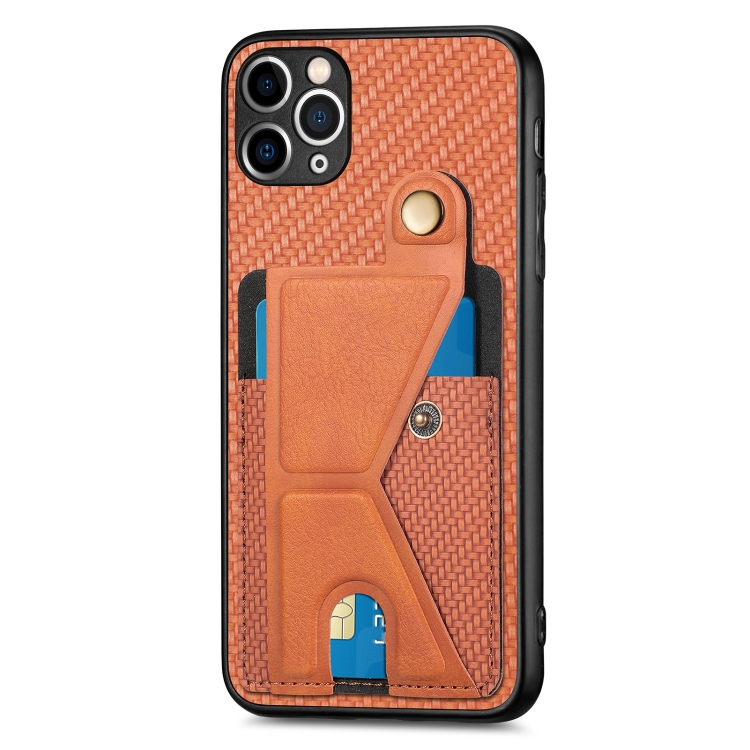 Funda para teléfono iPhone 11 Pro Carbon Fiber Wallet Flip Card con Soporte en Forma de K (Marrón)