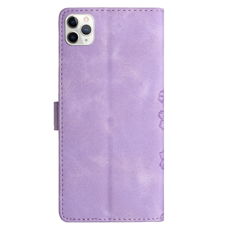 Funda para teléfono iPhone 11 Pro Cherry Blossom Butterfly Skin Feel de PU en relieve (Púrpura)