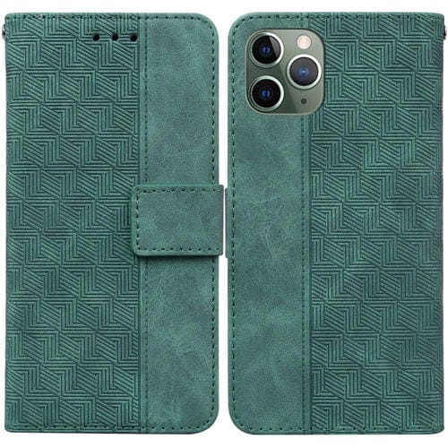 Funda de Teléfono iPhone 11 Pro Cuero Relieve Geométrico (Verde)