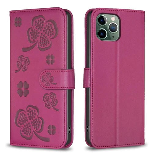 Funda para Teléfono iPhone 11 Pro Cuero con Relieve de Cuatro Hojas (Rojo Rosa)