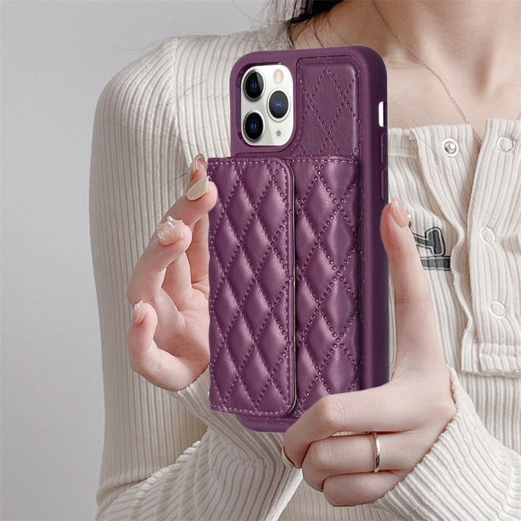 Funda para iPhone 11 Pro Horizontal Wallet Rhombic de Cuero para Teléfono (Púrpura Oscuro)