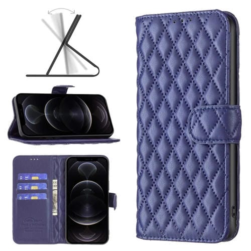 Funda para iPhone 12/12 Pro Diamond Lattice Wallet de Cuero con Tapa (Azul)