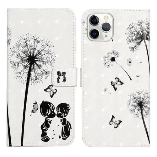 Funda para Teléfono iPhone 12/12 Pro Cuero Dibujo 3D en Relieve al Óleo (Pareja de Diente de León)
