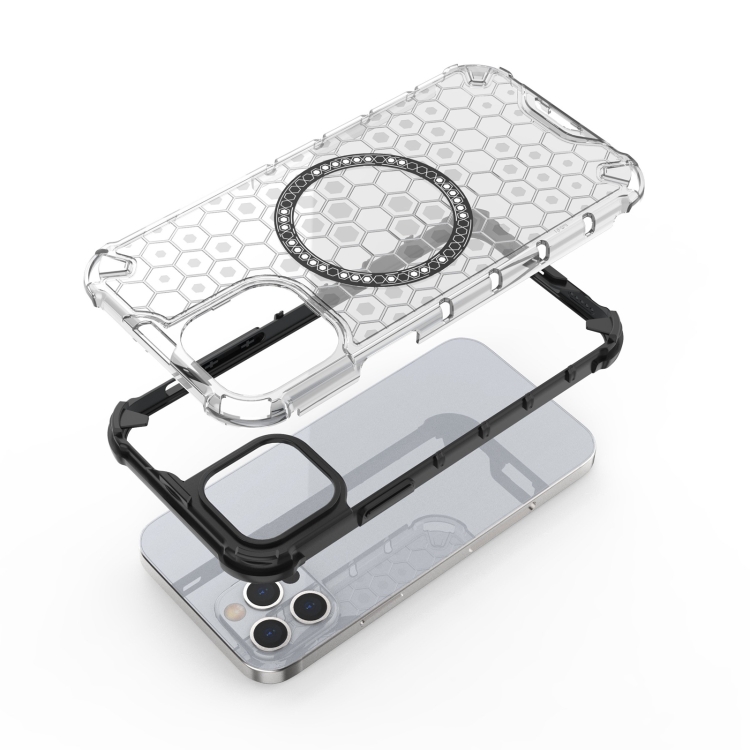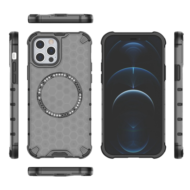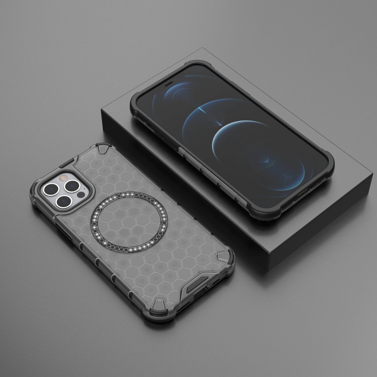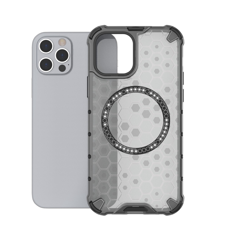 Funda para Teléfono iPhone 12/12 Pro Honeycomb Magnetic Ring a Prueba de Golpes (Negro)