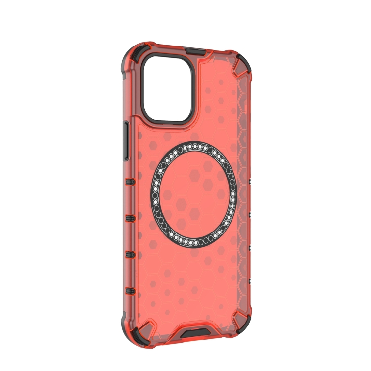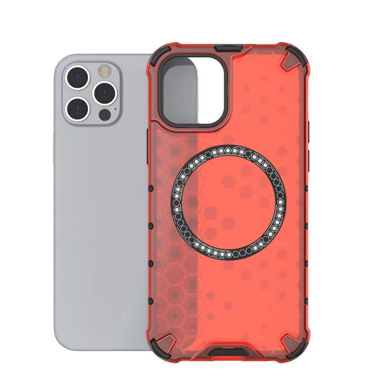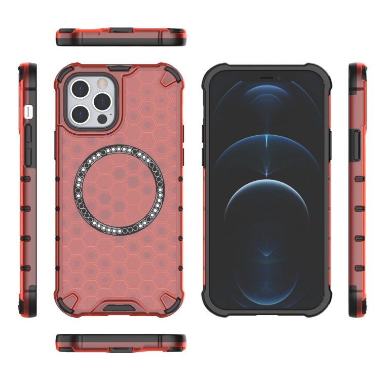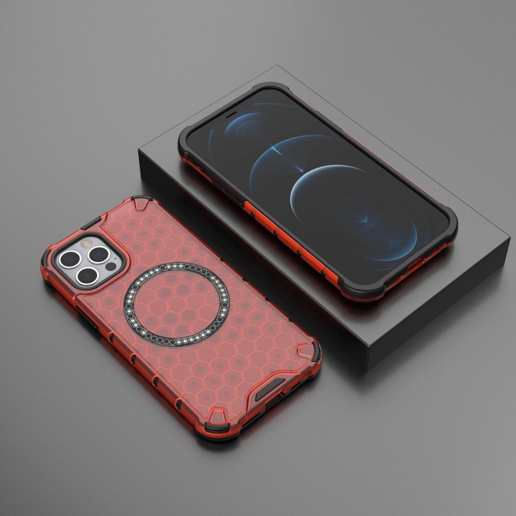 Funda para Teléfono iPhone 12/12 Pro Honeycomb Magnetic Ring a Prueba de Golpes (Rojo)