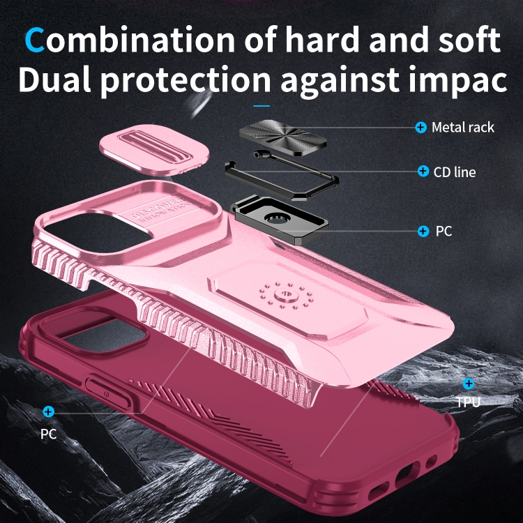 Estuche para Teléfono iPhone 12 Mini con Soporte Deslizante para Levas (Rosa + Rojo Rosa)