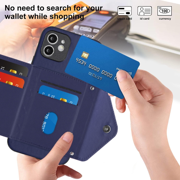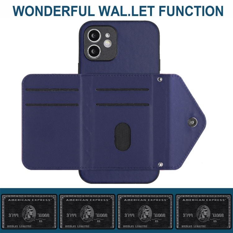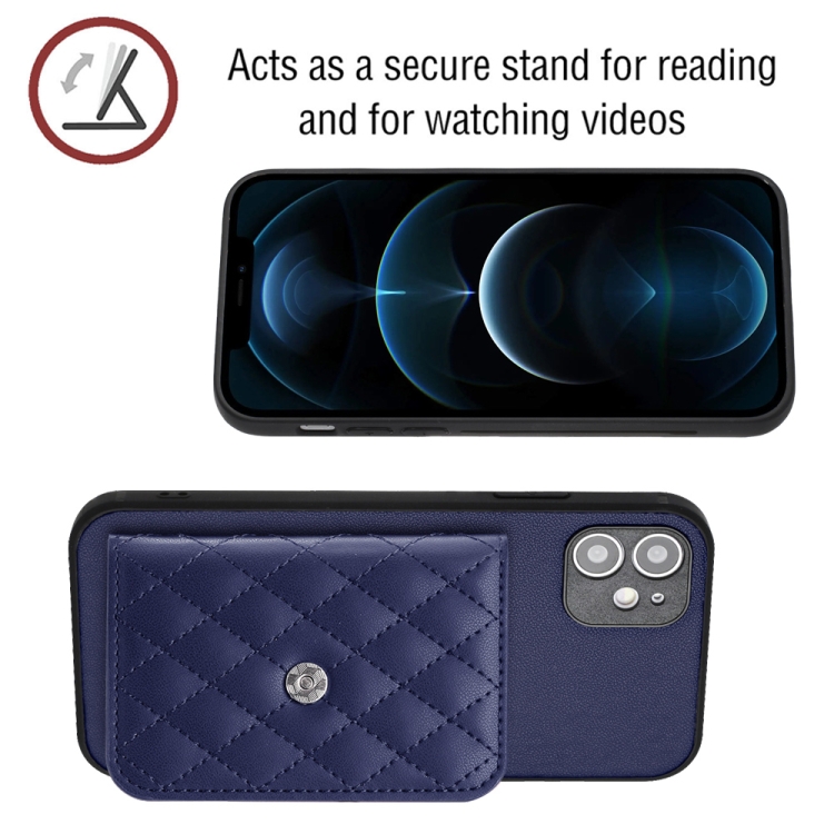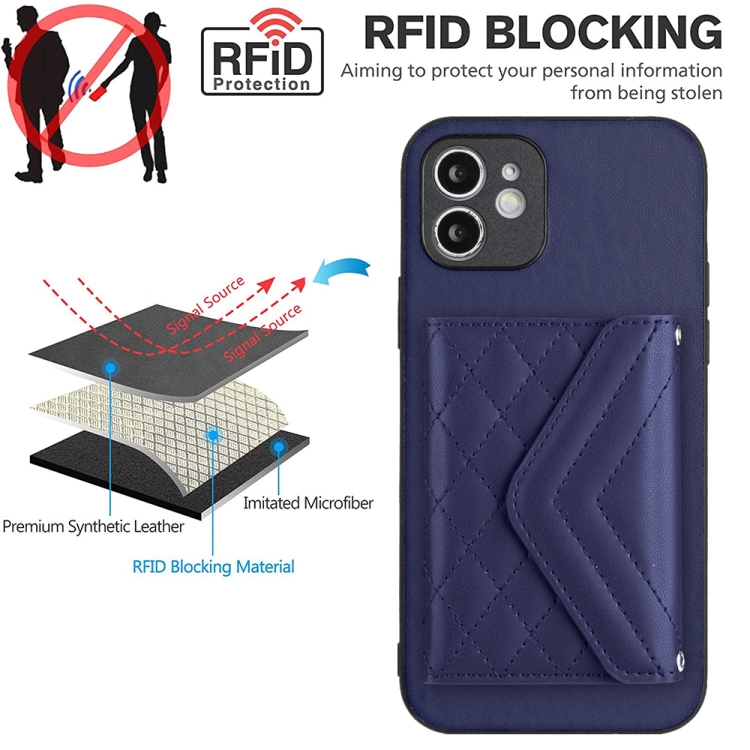 Estuche para Teléfono iPhone 12 Mini con RFID Bolsa para Tarjetas Textura Rómbica Cordón Largo (Púrpura Oscuro)