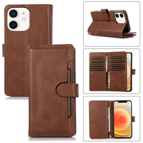 Funda para iPhone 12 Mini de Cuero con Ranura para Tarjeta y Pulsera (Café)
