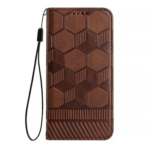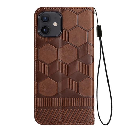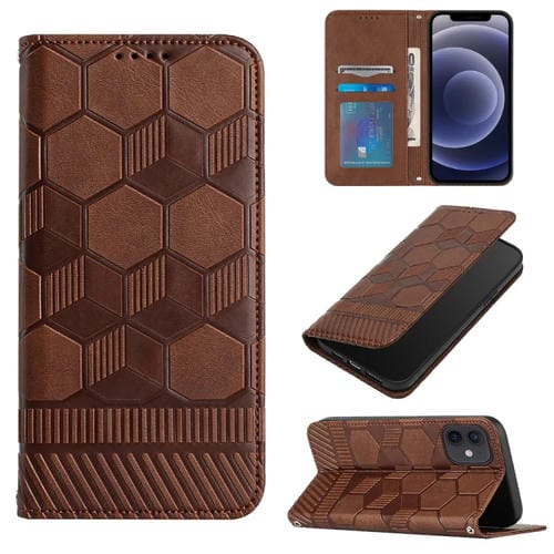 Funda de teléfono iPhone 12 Mini con tapa de cuero magnético y textura de fútbol (Marrón)
