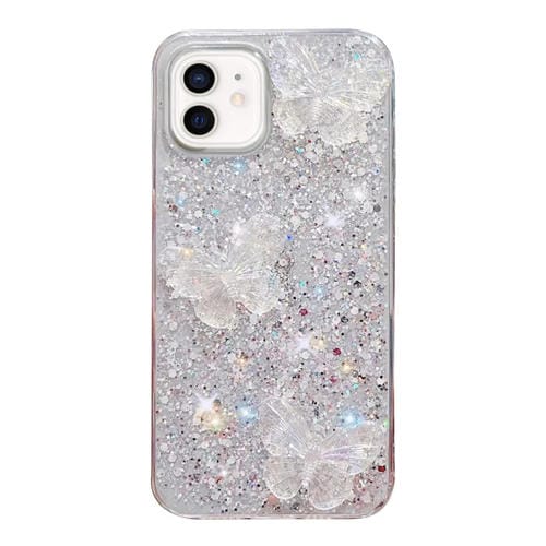 Funda para Teléfono iPhone 12 Mini TPU Epoxi Mariposas Cristal Lentejuelas (Plateado)