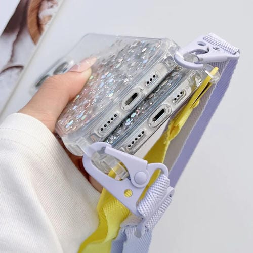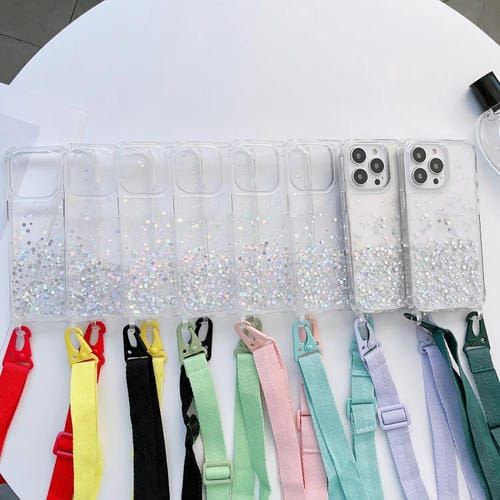 Funda para iPhone 12 Mini Lanyard Glitter Epoxy Clear Phone Case (Azul)