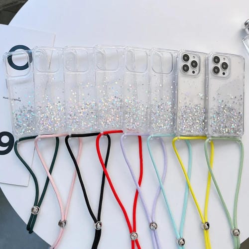 Funda para iPhone 12 Mini Lanyard Glitter Epoxy Clear Phone Case (Negro)