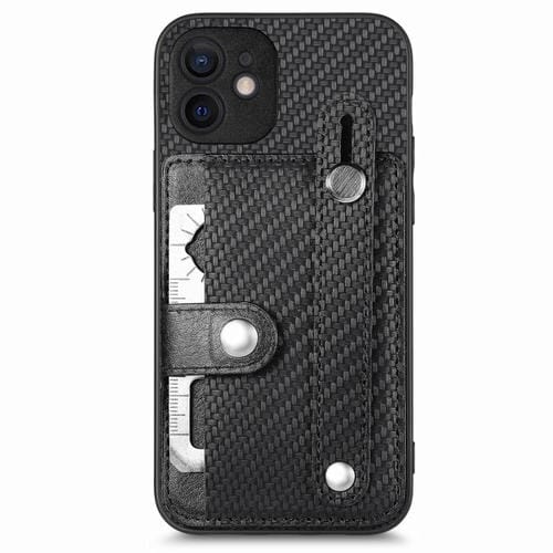 Funda para iPhone 12 Mini Muñequera Kickstand Tarjeta Monedero Contraportada Caja con Herramienta Cuchillo (Negro)