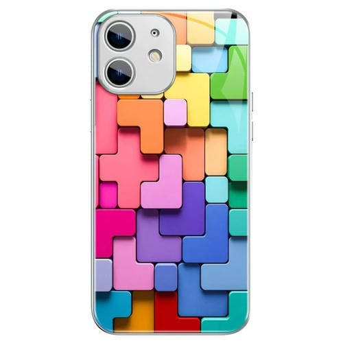 Caja de teléfono iPhone 12 Mini Patrón de Ladrillos de Juguete Vidrio a Prueba de Golpes (Plata)