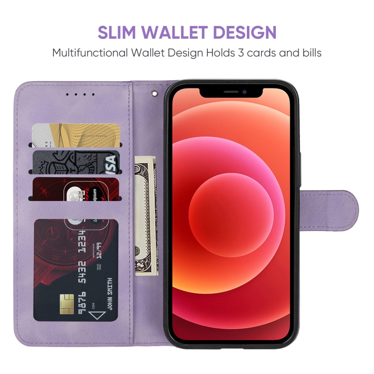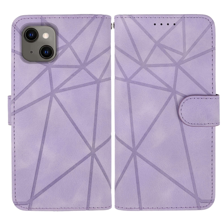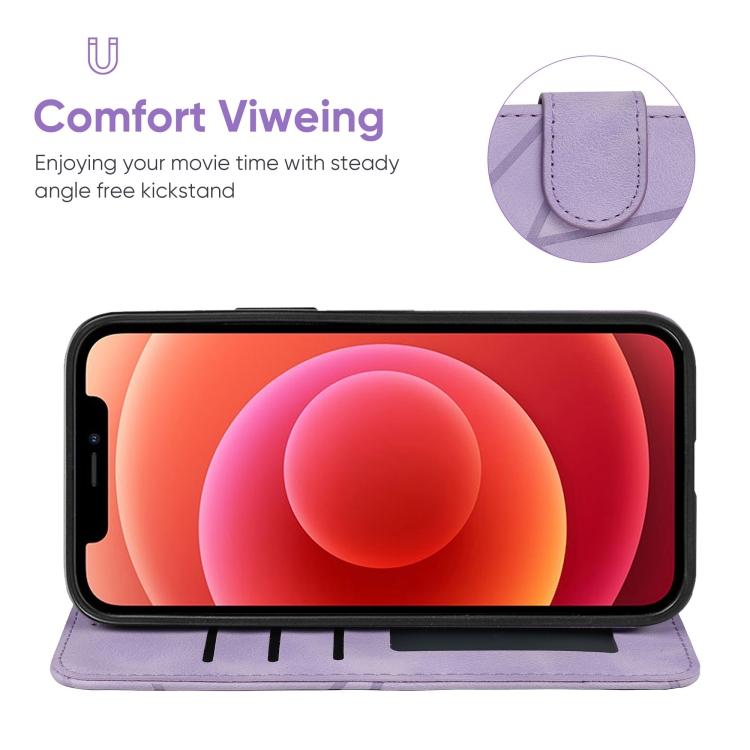 Funda para teléfono iPhone 12 Mini Skin Feel Cuero Líneas Geométricas (Púrpura)